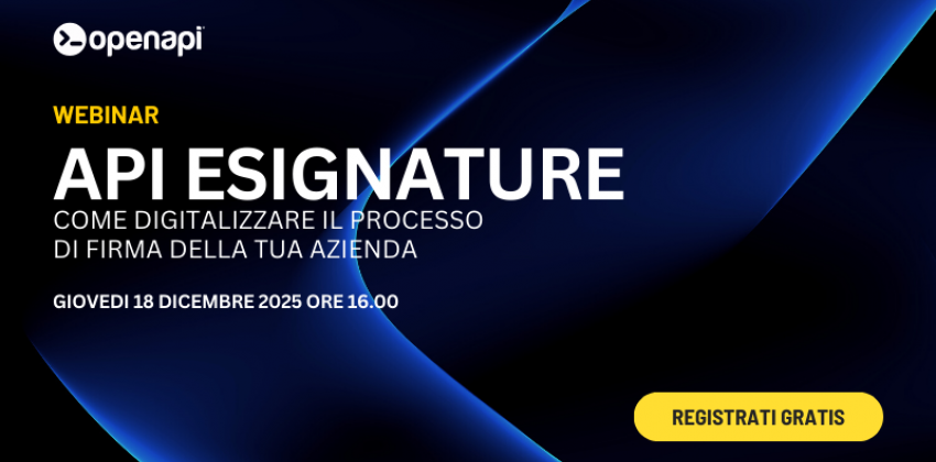 Partecipa al webinar dedicato alla nostra nuova API di Firma Elettronica, una soluzione conforme al regolamento eIDAS, agli standard ETSI e pienamente allineata al GDPR. Scoprirai come integrare rapidamente una firma elettronica semplice, sicura e legalmente valida nei tuoi processi aziendali, migliorando l’efficienza operativa e offrendo un’esperienza utente fluida e personalizzata.